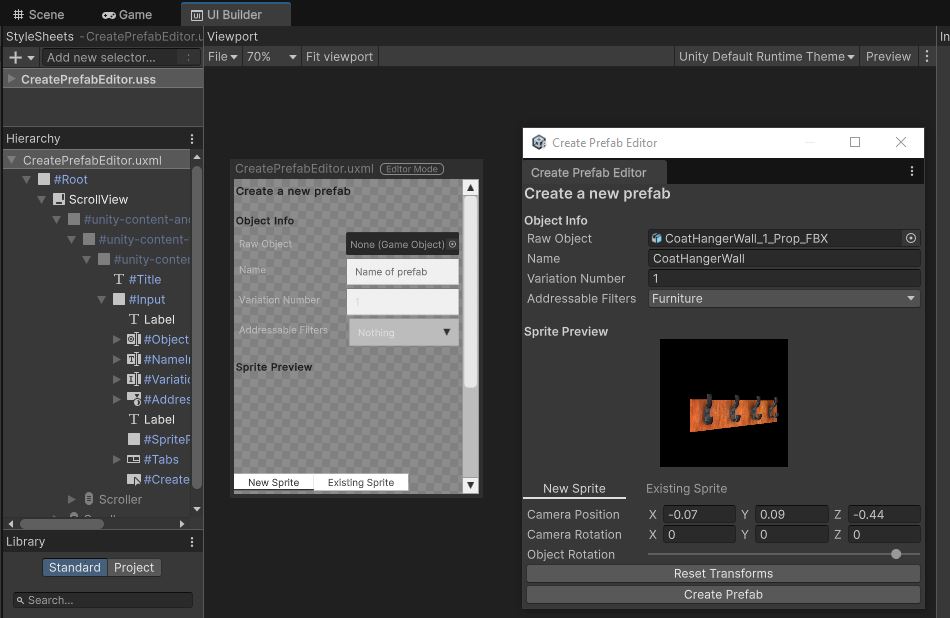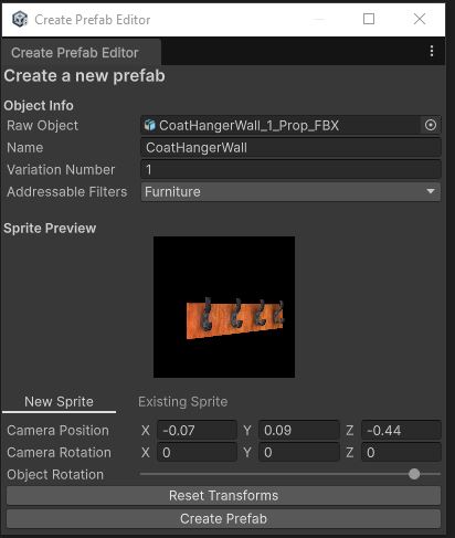 To create this asset, you need a lot of information, like the object’s prefab and a screenshot. The artists in our team asked us to create a tool that handles most of the setting of the data, to minimize the chance of mistakes, and to speed up the creation of usable props and characters.
